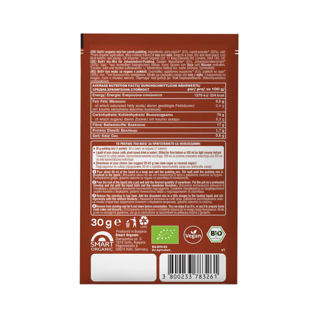 Ubade sugukonda kuuluv jaanikaun on looduslikult magus söödav kaun, mida on sajandeid hinnatud. Vitamiinide ja mineraalide poolest rikas jaanikaun on mitmekülgne koostisosa nii toiduvalmistamisel kui ka kosmeetikas. Erinevalt kakaost ei sisalda jaanikaun stimulante nagu teobromiin, kofeiin ja fenüületüülamiin, mistõttu on see ideaalne alternatiiv, eriti lastele. Selle loomulikult madala kalorsusega profiil muudab selle süümepiinadeta valikuks teie lemmikretseptide jaoks. Nautige seda jaanikaunapudingu segu karamelli-kakao maitset. Valmis vaid 1 minutiga, see on kiire ja tervislik magustoit, mis võidab kogu pere südamed.