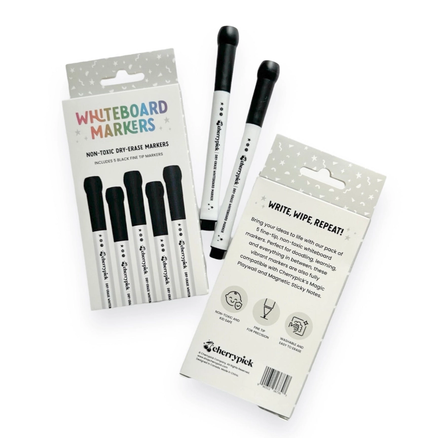 Cherrypick kustutatavad markerid (5 tk) – Must (sobilikud magnettahvlile)
