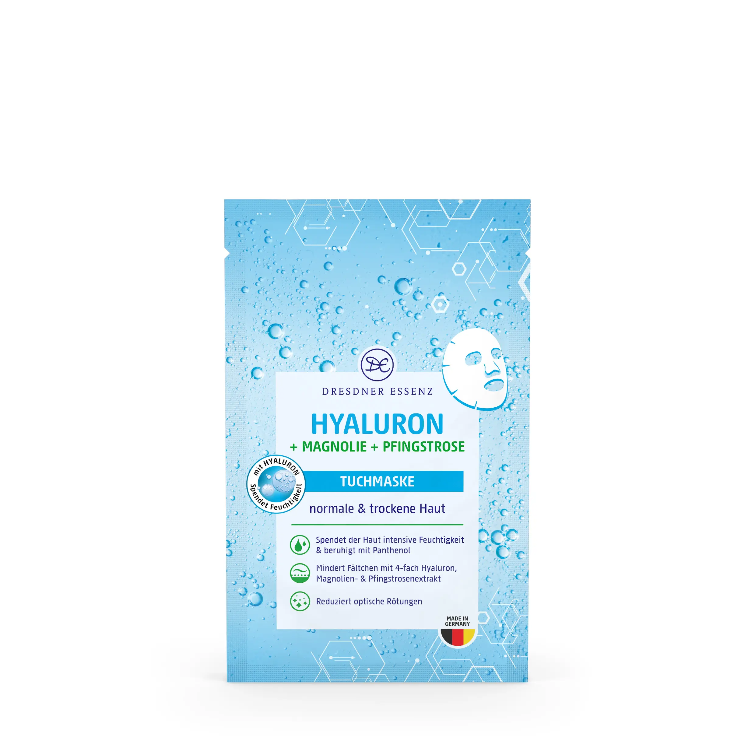 Dresdner Essenzi hüaluroonhappega kangasmask niisutab nahka intensiivselt ja annab sellele loomulikult värske välimuse.