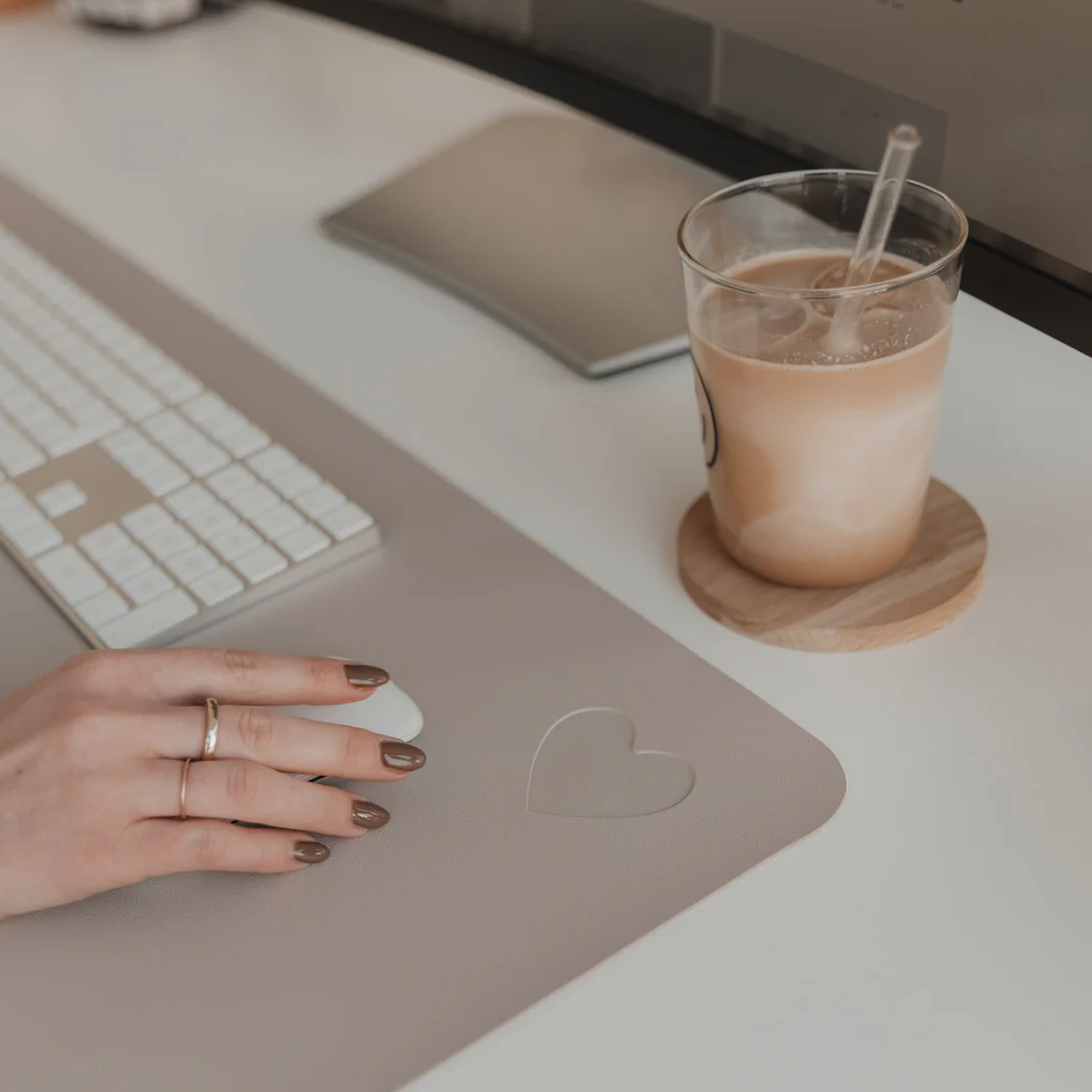 Meie beež südamekujuline lauamatt loob teie töökohale stiilse ja armsa keskkonna. Kvaliteetsest kunstnahast valmistatud matt avaldab muljet mitte ainult oma elegantse välimuse, vaid ka funktsionaalsuse ja mitmekülgsusega.