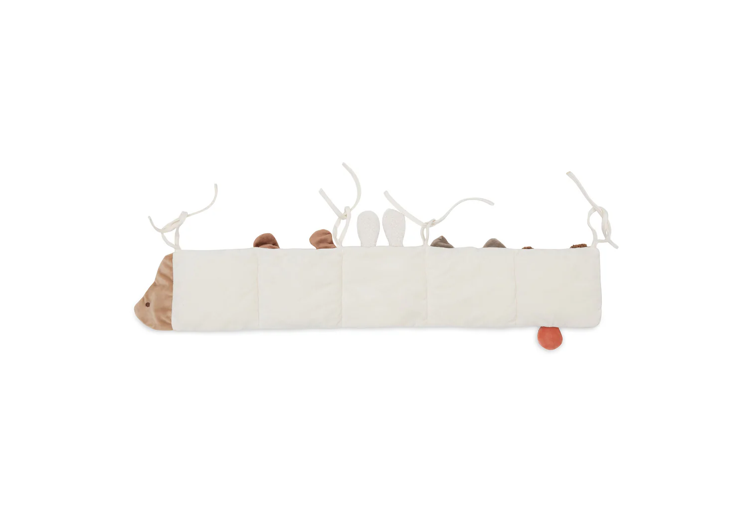 See mänguaediku/võrevoodi tegevusraamat pakub mitmesuguseid mänguvõimalusi: peeglid uudishimu sütitamiseks, rõõmsaid hääli tegevad kellad, krõpsuvad tekstuurid uurimiseks ja pehmed materjalid kaissu võtmiseks. Tänu ülaosas olevatele nööridele saab selle hõlpsalt mänguaediku külge kinnitada.