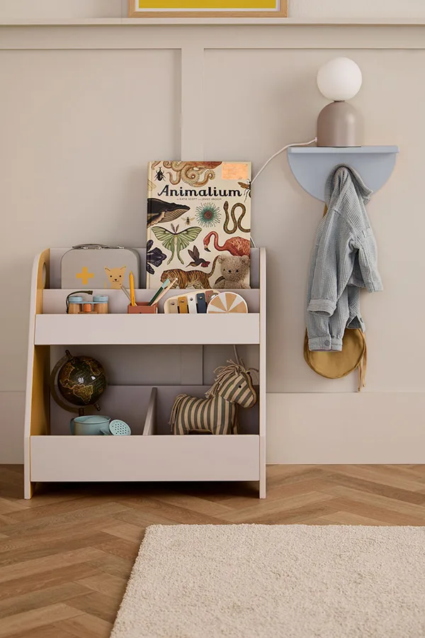 Kid’s Concept STAR sarja halli ja sinepikollase värviga hoiuriiul teeb pisipõnnidele lemmik-unejuttude ja mänguasjade hoiustamise lihtsaks. Alumine osa on just õige pehmete mänguasjade, ehitusklotside ja muude lõbusate mänguasjade jaoks, samas kui ülemine osa on suurepärane koht lemmikraamatute esitlemiseks. Peamised omadused: