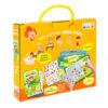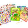 Papist kohvrikeses on suurtähtedes lihtsate lausetega raamat, mille lehekülgi saab värvides ja kleepse kleepides täiustada. Raamatust leiab ka juhendid kella ja ööpäevaratta meisterdamiseks. Lisaks kuulub komplekti neli pildistseeni, 100 hõõrdekleepsu ja pulgake, millega kleepsud pildile hõõruda.