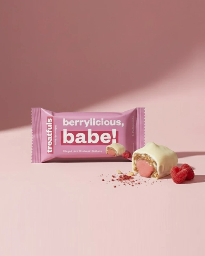 Tervitage oma uut roosat silmailu! “Berrylicious Babe” ühendab vaarikaid, datleid ja india pähklivõid – vallatu, puuviljane, maitseküllane 🍓☀️ Orgaaniline, vegan, ilma rafineeritud suhkru ja kunstlike lisanditeta. Batoon, mis paneb sind minestama. Ühes pakendis: 2 x 20 g batooni.