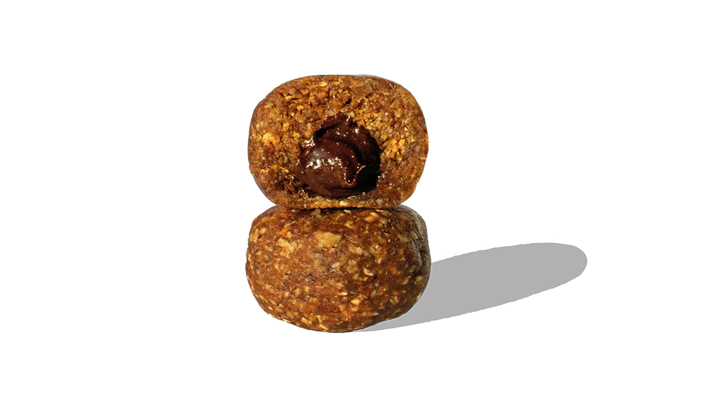 Koostisosad: Orgaanilised sarapuupähkli- ja banaanipallid sarapuupähkli- ja kakaotäidisega (2 x 17). Koostisosad: datlid*, kaerajahu* (gluteenivaba), datlisiirup* (100% datlid), röstitud sarapuupähkel (9,2%)*, külmkuivatatud banaan (6,2%)*, sarapuuvõi (5,3%)*, india pähklivõi*, kakao* (jahvatatud), kaneel*, datlid* (jahvatatud), muskaatpähkel*, sool, vanill*. Võib sisaldada gluteeni, munade, piima, pähklite, sulfitite, seesami ja/või nende toodete jälgi.